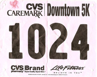 They gave us our race T-shirts when we picked up our numbers - but we parked pretty far from the start so I carried my shirt while I ran. I used it as a sweat rag for the first two miles - then decided it was really annoying to carry. I ended up tossing it off to some kid that was watching the race. Man, I hope he washes it before he wears it.